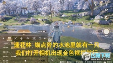 传送至【逢花林】锚点,旁边的水池中有折扇白鹭。打开相机对准白鹭,取景框变金即可完成。