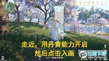 若墨池附近画轴未开启:传送【奉龙塔】锚点 → 左转前进,找到画轴并用丹青能力开启 → 选择“入画”进入丹青之境 → 左转进入亭子最深处拍摄。