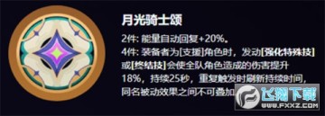 月光骑士颂(4件):装备者为【支援】角色时,发动强化特殊技或终结技可使全队造成的伤害提升18%,持续25秒;重复触发可刷新持续时间,但同名效果不可叠加。