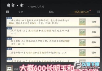 2、每个流派都完成一键升级后,累积大量长鸣玉和心法奖励。
