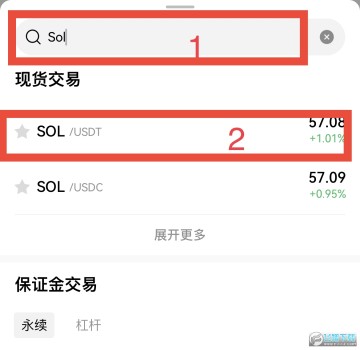 在交易对搜索框中输入“SOL/USDT”(这是最主流的交易对)。