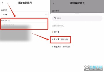选择一下收款方式,这里你可以选择银行卡、支付宝还有微信,我们就可以选择“支付宝”,