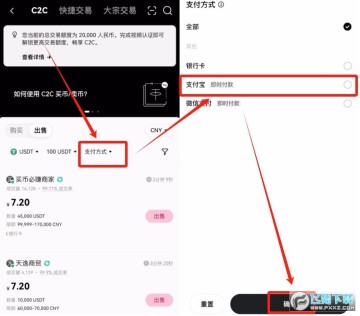 进来之后我们可以看到这里有C2C、快捷交易还有大宗交易。