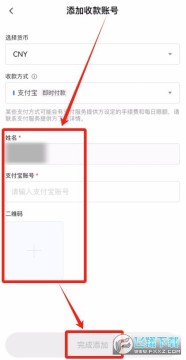 然后再输入你的姓名、支付宝账号,还有你的收款二维码就可以了。点击【完成添加】,这样就方便商家去往我们的账户里面打钱了。
