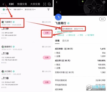 接下来下面这些商家就比较符合我们的条件了,我们就可以选择一个去跟他交易。我们选择的标准就是他的成交量还有成交率一定要高,我们选择一个比较高的点开他的主页看一下,他成为商家的时间。