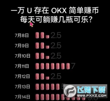 最近在网上我也看到了这样一张图,说是10000U存在欧易的简单赚币当中,每天可以赚几瓶可乐。7月14号的收益最高,一天可以赚到9.5瓶可乐,相当于不到30块钱,这个收益其实已经很可观了。