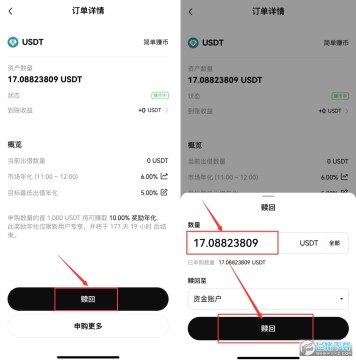 9、如果你不想使用简单赚币功能,可以点击下方的【赎回】,数量点击【全部】,再点击【赎回】。这样会随时让我们赎回成功的,没有任何的限制。