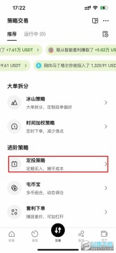接下来就是欧易的第二个理财产品“定投策略”。我们可以使用欧易交易所自动的定时定量买入比特币,不需要我们手动进行操作,接着我就来给大家演示一下这个功能。