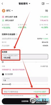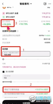 可以看到它的比特币套利策略,如果投入10万USDT的话,单次可以套利13个USDT,年化收益率在10%左右,还是非常不错的。