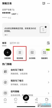 我们还是回到刚才的策略交易界面,点击【现货网格】。
